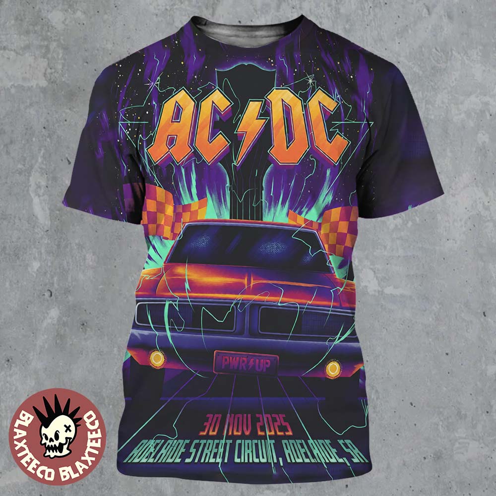 Blaxteeco: About ACDC Adelaide PWR Up Tour Poster 2025 In South Australia At Adelaide Street Circuit On 30 November 2025 The Dodge Charger Art All Over Print Shirt Introduction: