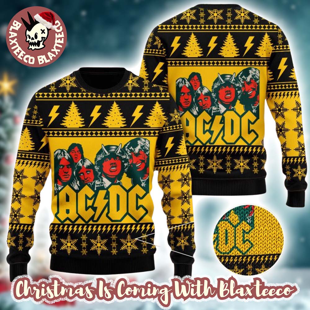 Blaxteeco: About ACDC Band Funny Graphics Snowflakes And Thunder Pattern Knitted Black And Yellow Christmas Ugly Sweater: