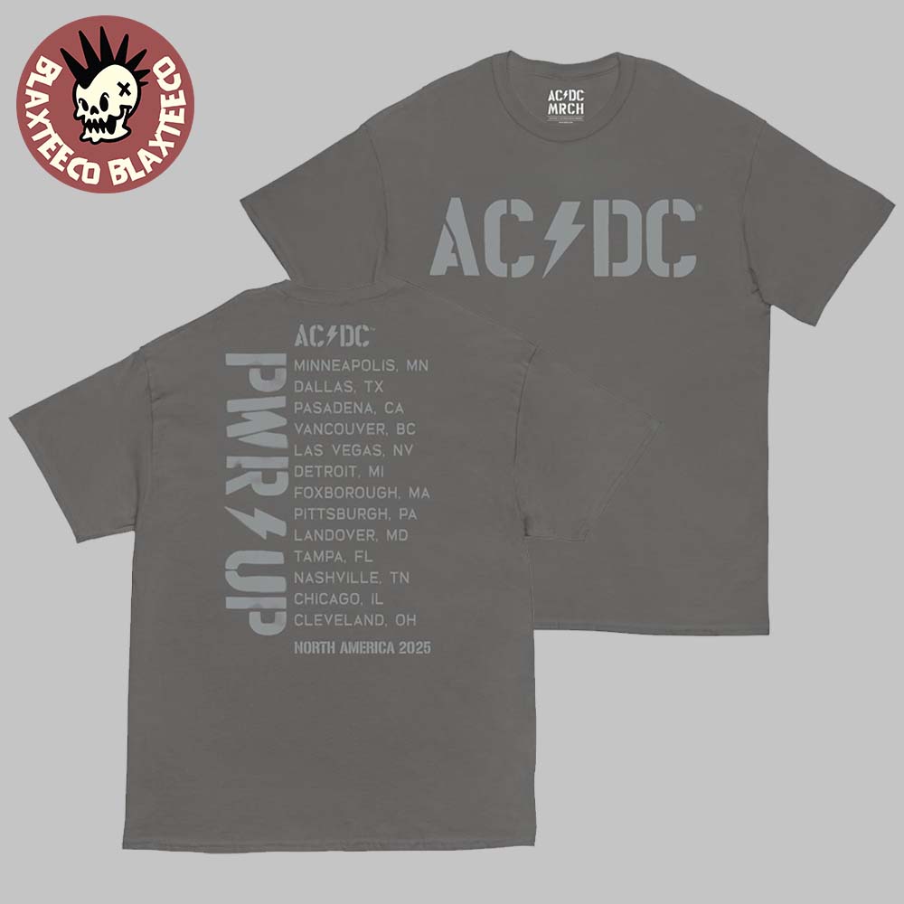 ACDC Charcoal Logo PWR UP Tour North America 2025 Tour Dates Two Sides Unisex T-Shirt Features: