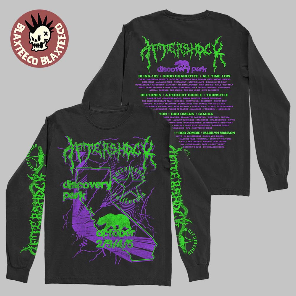 Aftershock Festival 2025 Sacramento California Merch On October 2-3-4-5 2025 Shocking Green Long Sleeve Black Tee