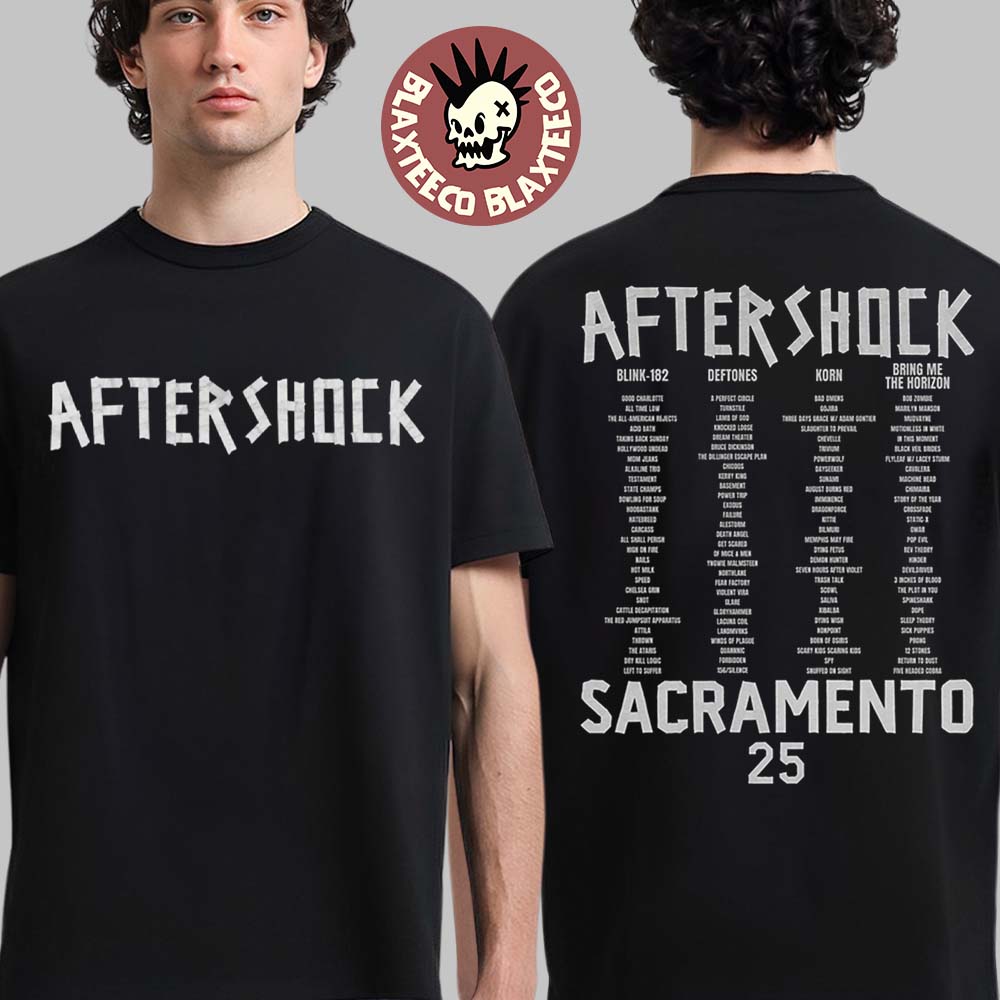 Blaxteeco: About Aftershock Festival 2025 Sacramento California Tape Up Logo With Lineup Back Two Sided T-Shirt: