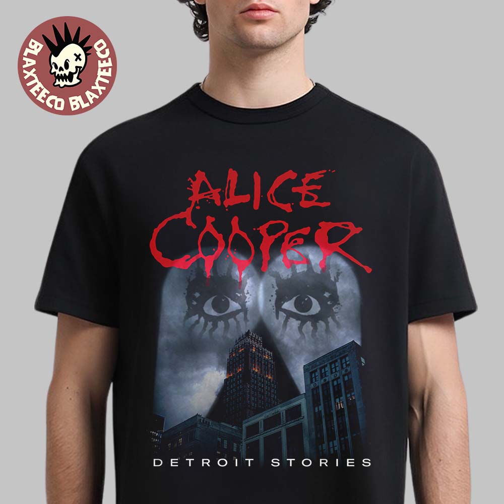 Celebrate five years of shock rock brilliance with the Alice Cooper Detroit Stories The 5th Anniversary T-Shirt. Inspired by the legendary Detroit Stories era, this striking design features bold red “Alice Cooper” lettering above haunting, dramatic imagery that captures the dark, theatrical spirit fans know and love. The moody cityscape backdrop pays tribute to Detroit’s gritty rock heritage, while the intense visual elements reflect the album’s powerful themes and unmistakable stage presence. It’s a must-have piece for devoted fans who appreciate the legacy, attitude, and storytelling that define Alice Cooper’s iconic career.
