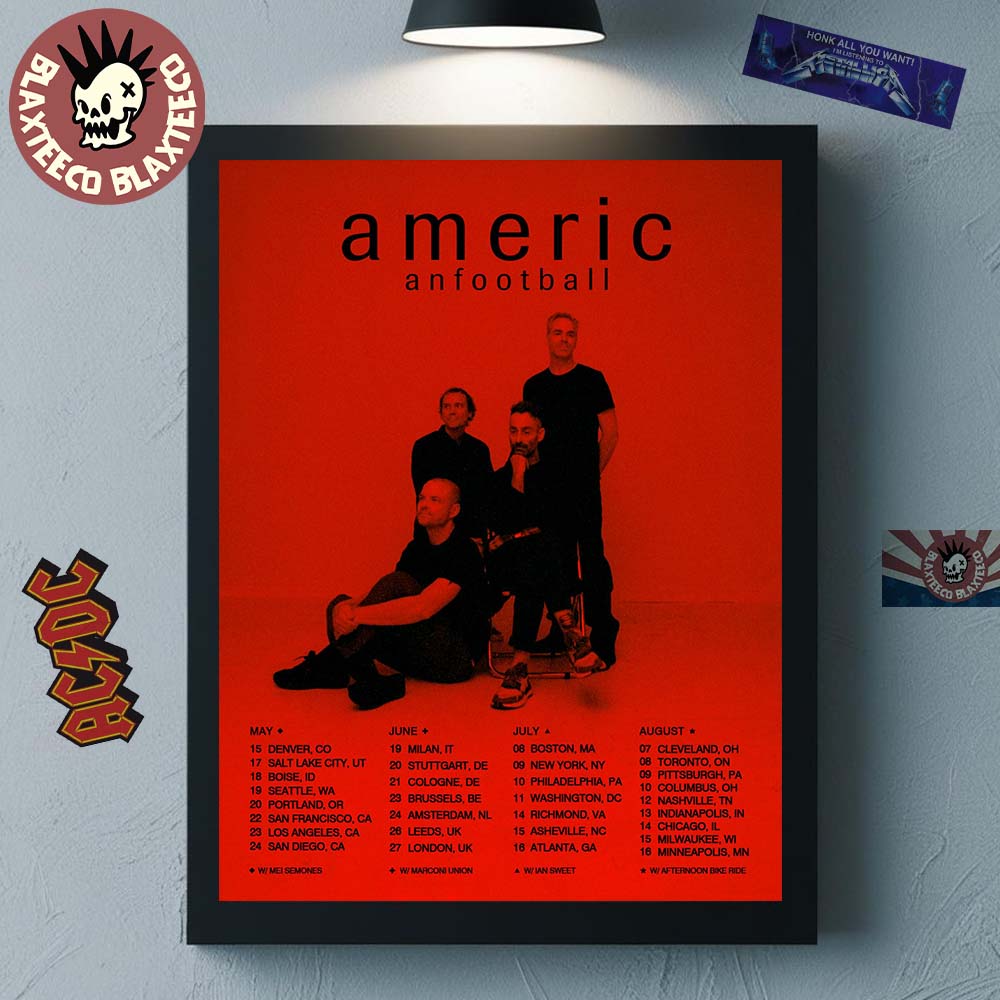 Celebrate iconic emo and indie rock history with the American Football World Tour 2026 From May To August Schedule Dates Decor Poster Canvas. This striking tour poster features a bold red minimalist design paired with a powerful band portrait, perfectly reflecting American Football’s signature emotional depth and atmospheric sound. Displaying the full 2026 world tour schedule from May through August, this artwork commemorates a landmark tour that spans major cities across North America and beyond. Its clean typography and dramatic color palette make it an eye-catching centerpiece for music lovers who appreciate both modern design and legendary alternative rock culture.