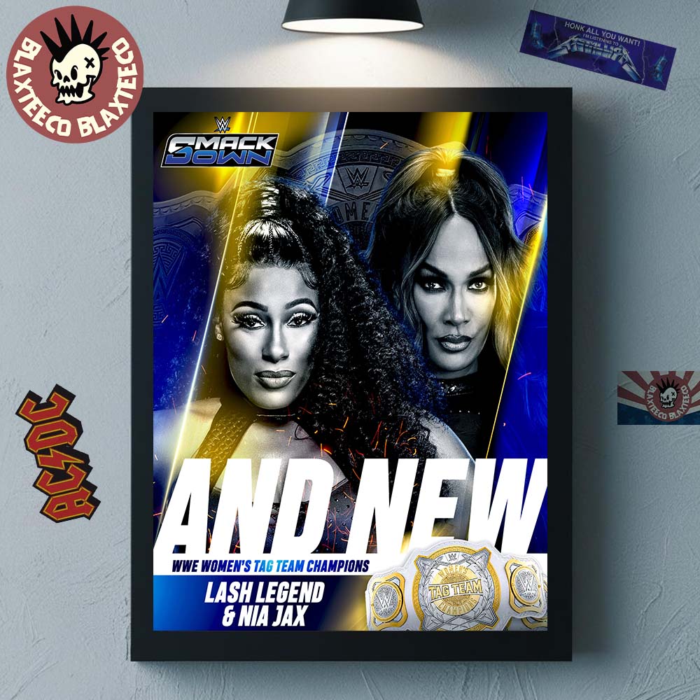 Celebrate championship glory with the And New Lash Legend And Nia Jax Are WWE Women's Tag Team Champions Home Decor Poster Canvas, a bold tribute to dominance inside the squared circle. This striking design captures Lash Legend and Nia Jax in a powerful split-portrait composition, highlighted by dramatic blue and gold lighting effects that reflect the prestige of WWE gold. The large “AND NEW” headline commands attention, marking their unforgettable victory as WWE Women’s Tag Team Champions. Complete with championship belt detailing and SmackDown branding, this poster perfectly honors the strength, confidence, and presence of two unstoppable competitors.