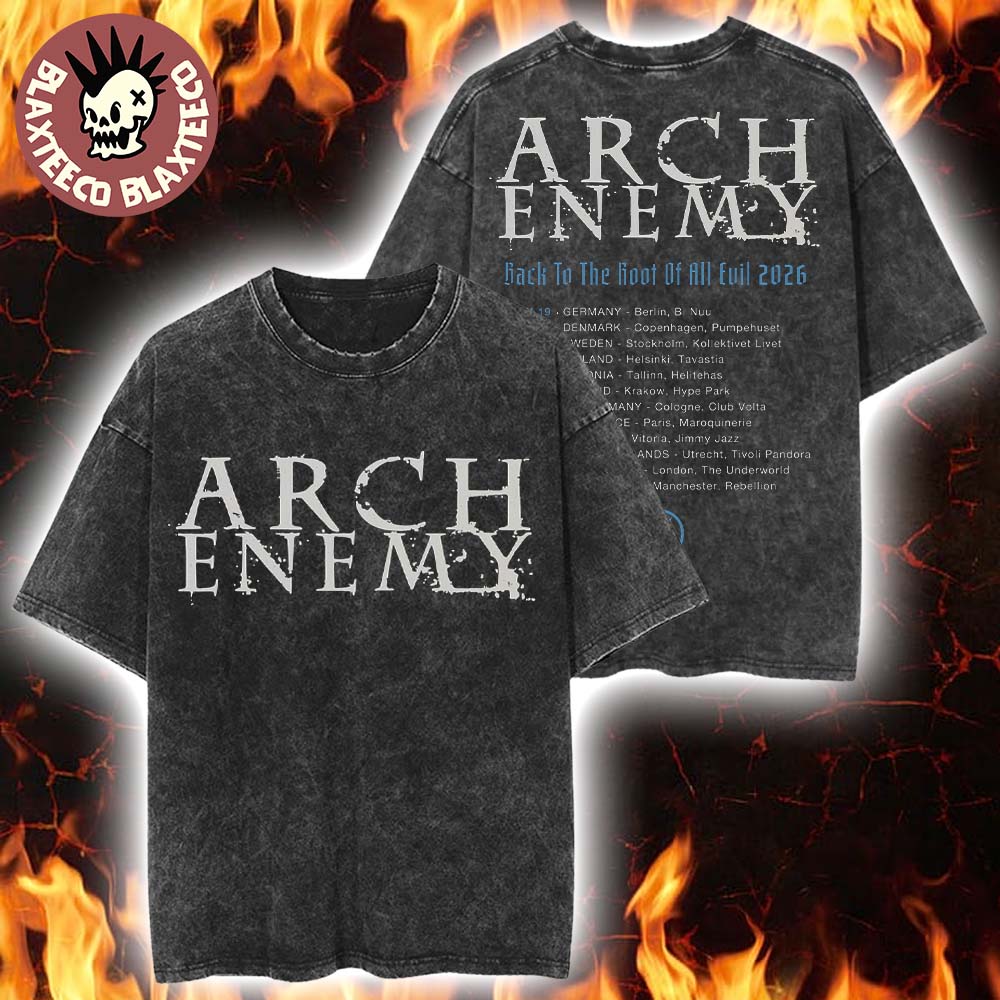 Blaxteeco: About Arch Enemy Back To The Root Of All Evil 2026 Tour Europe And UK Schedule Dates Washed T-Shirt: