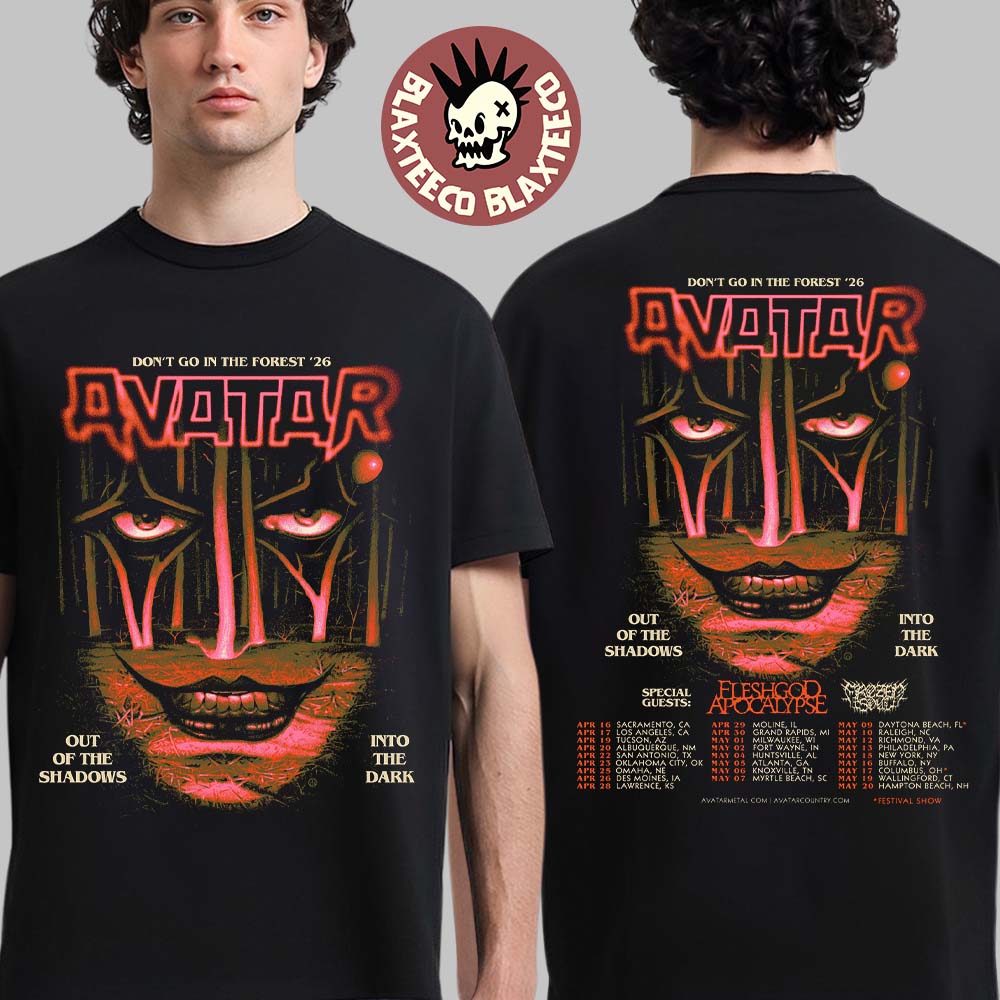 Crafted for comfort and durability, this Avatar tour T-shirt is ideal for long shows, casual wear, or adding to a growing band merch collection. The “Out Of The Shadows Into The Dark” theme reflects Avatar’s signature blend of horror imagery and heavy metal artistry, making it a standout choice for fans of extreme and theatrical metal. Perfect as a gift for rock and metal lovers, this 2026 tour shirt is more than apparel—it’s a collectible tribute to an unforgettable live era. Elevate your wardrobe with this iconic Avatar band T-shirt and carry the darkness wherever you go.
