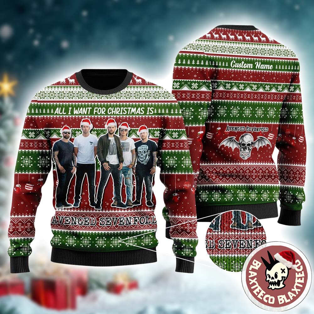 Blaxteeco: About Avenged Sevenfold All I Want For Christmas Is Avenged Sevenfold Band Member 2025 Ugly Christmas Sweater: