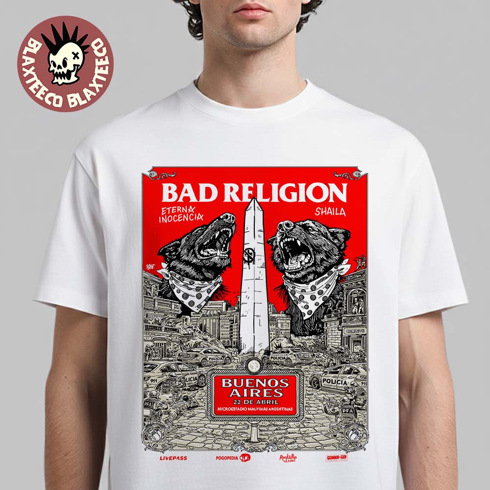 Blaxteeco: About Bad Religion Buenos Aires Argentina 2026 Event Poster On April 22 2026 T-Shirt: