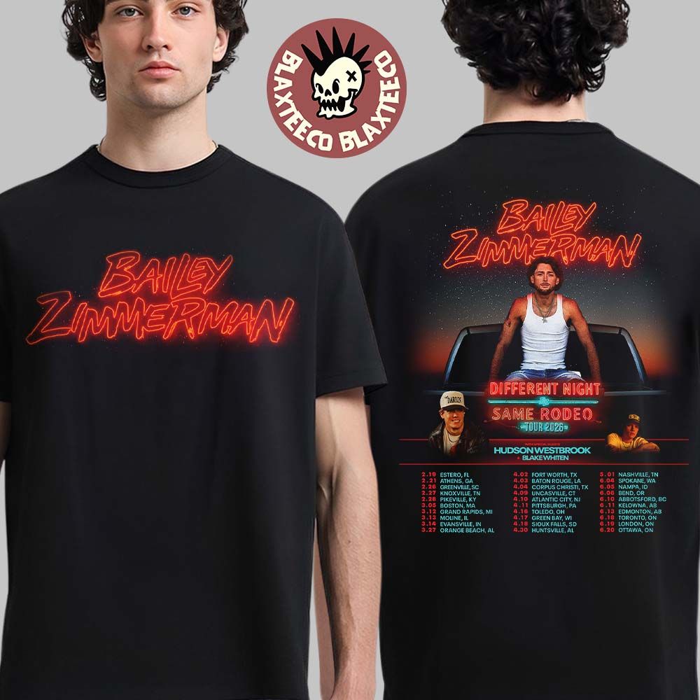 Blaxteeco: About Bailey Zimmerman Different Night Same Rodeo Tour 2026 Two Sided T-Shirt: