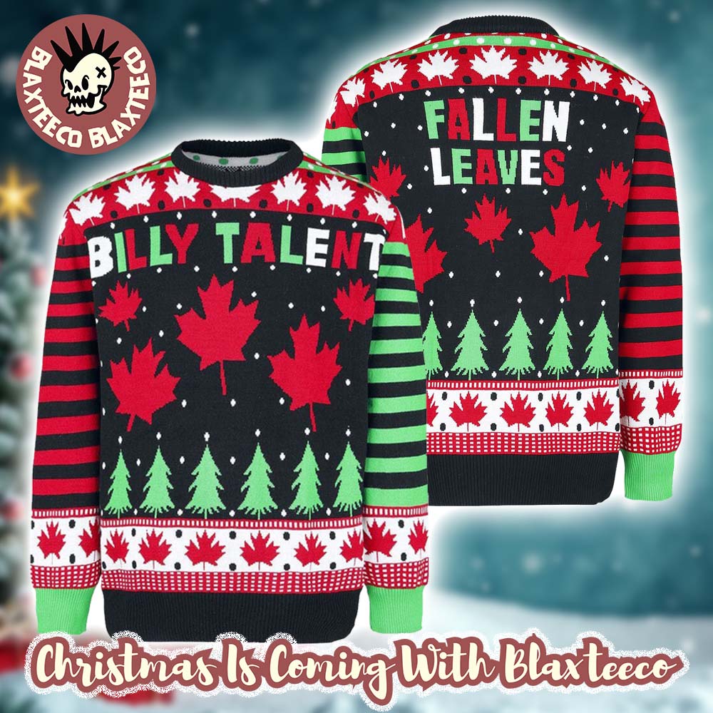 Billy Talent Canadian Rockers Fallen Leaves Holiday 2025 Ugly Christmas Sweater Features: