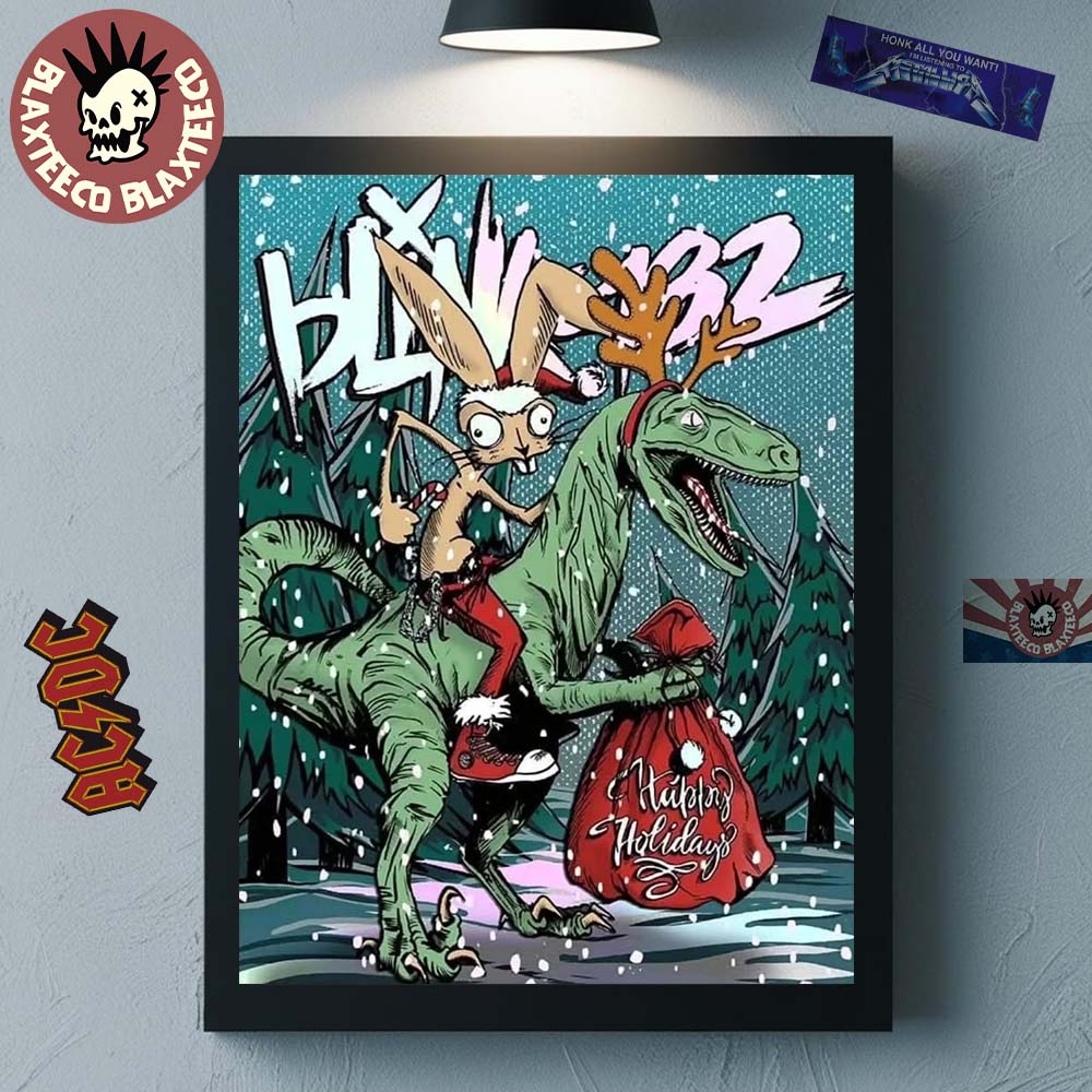 Blaxteeco: About Blink 182 Happy Holidays 2025 Merry Xmas Rabbit Riding Velociraptor Poster Canvas Introduction