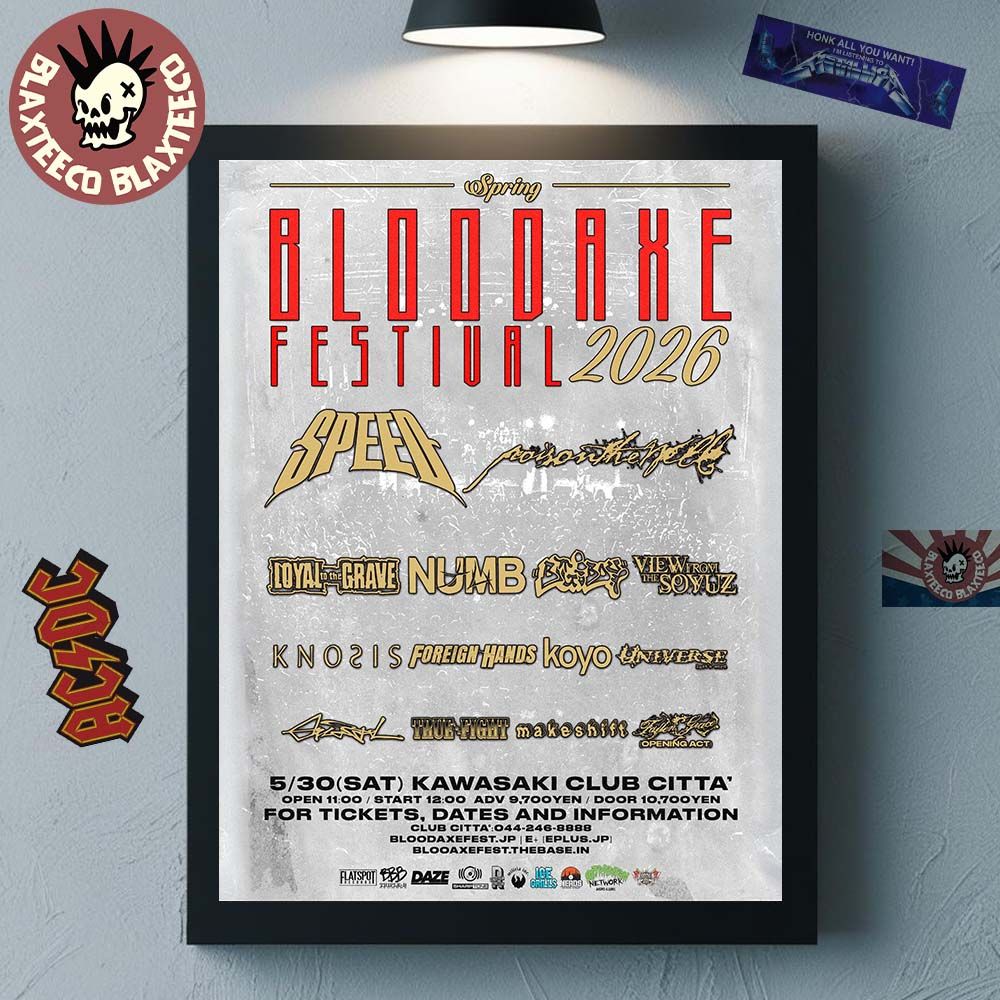 Bloodaxe Festival Spring 2026 Full Lineup In Japan At Kawasaki Club Citta Home Decor Poster Canvas Features: