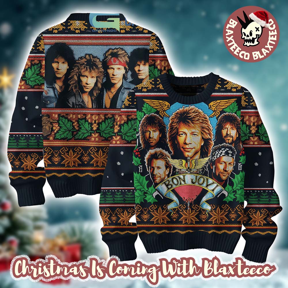 Blaxteeco: About Bon Jovi Band Photo Retro Style Ugly Christmas Sweater: