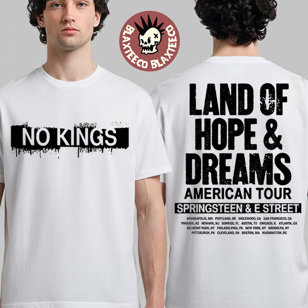 Blaxteeco: About Bruce Springsteen And E Street Land Of Hope And Dreams American Tour 2026 Merch No Kings White T-Shirt: