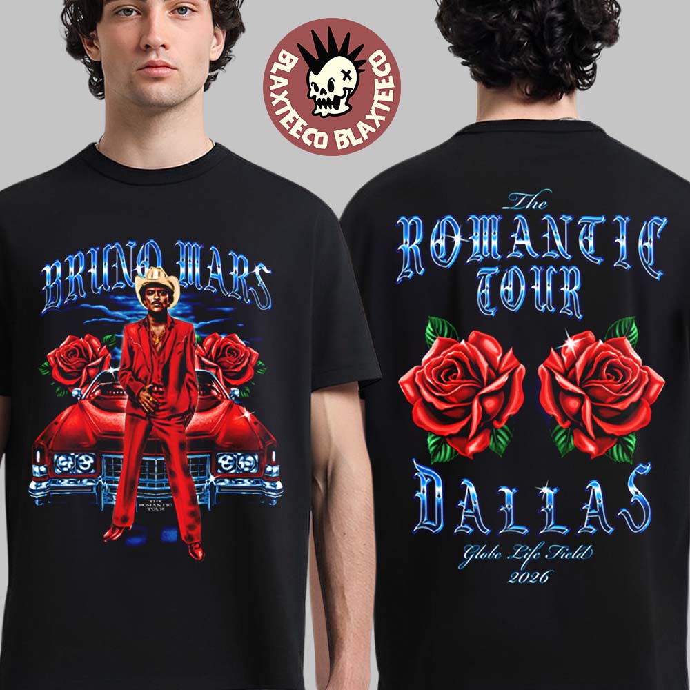 Bruno Mars The Romantic Tour 2026 Dallas Texas Exclusive Merch Tee Features: