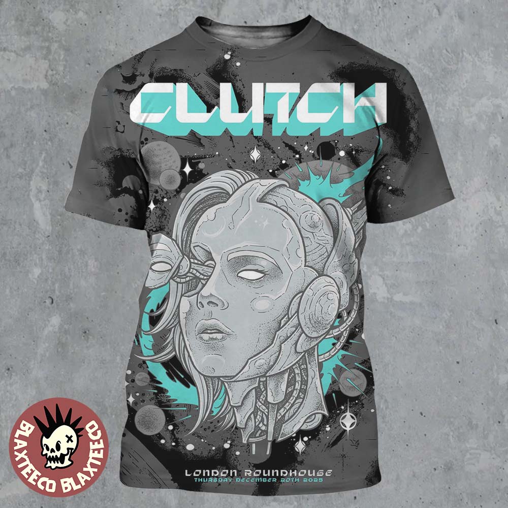 Celebrate an unforgettable night of heavy rock with the Clutch London Roundhouse 2025 Event Poster On December 20 2025 All Over Print Shirt. Designed to honor the band’s powerful performance on December 20, 2025, this shirt features an electrifying futuristic illustration that captures Clutch’s signature blend of groove, grit, and sci-fi mystique. The detailed artwork showcases a robotic, cosmic-inspired figure surrounded by bold textures and atmospheric elements, making it a standout piece for fans who appreciate both music and striking visual design. Printed using high-quality dye-sublimation technology, every inch of the shirt bursts with crisp lines and vibrant tones that won’t fade over time.