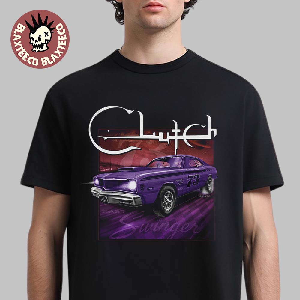 Rev up your style with the bold and nostalgic Clutch Purple 73 Dodge Swinger T-Shirt, a must-have piece for fans of classic muscle cars and rock-inspired apparel. Featuring a striking illustration of a vintage 1973 Dodge Swinger in a vivid purple finish, this design brings together retro automotive culture and Clutch’s iconic aesthetic. The detailed artwork pops against the black background, creating a dynamic and energetic look perfect for everyday wear or concert nights. With the recognizable Clutch logo displayed prominently above the car graphic, this tee blends music and muscle in a way that stands out from typical band merch.