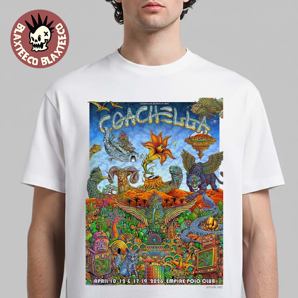 Blaxteeco: About Coachella 2026 Special 25th Anniversary Poster Indio California At Empire Polo Clun On April 10-12 And 17-19 2026 T-Shirt:
