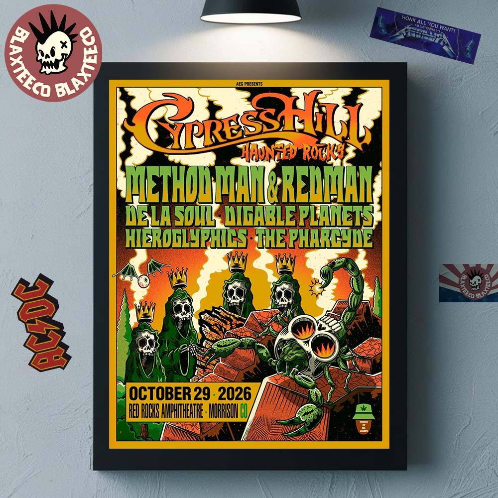 Cypress Hill Haunted Rocks 2026 At Red Rocks Amphitheatre In Morrison Colorado Poster Canvas Features: