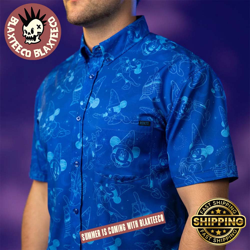 Blaxteeco: About Disney Fantasia RSVLTS Mickey Mouse Sketches In The Stars Button Short Sleeve Hawaiian Shirt Introduction: