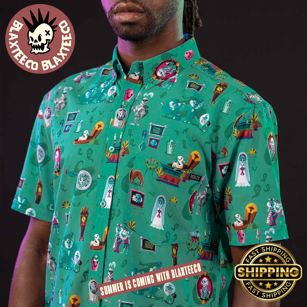 Blaxteeco: About Disney Haunted Mansion RSVLTS After-Life Of The Party Button Short Sleeve Hawaiian Shirt Introduction:
