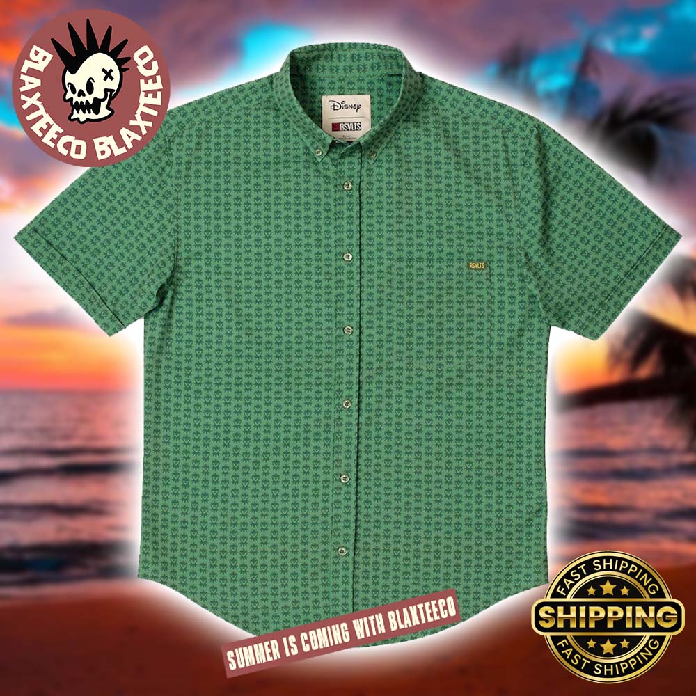 Disney The Muppets RSVLTS “Kermit the Frog – Going Green” Button Short Sleeve Hawaiian Shirt is a stylish and subtle celebration of one of the most beloved characters from The Muppets. Inspired by the calm, charming personality of Kermit the Frog, this shirt features an all-over green pattern with repeating minimalist Kermit icons that create a clean, modern look. The rich green colorway gives a refined tropical vibe, making it perfect for fans who want to show their love for the Muppets in a more understated yet instantly recognizable way. Officially licensed by Disney, this design blends nostalgia with everyday wearability.