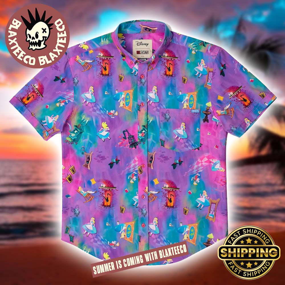 Blaxteeco: About Disney's Alice in Wonderland RSVLTS Down the Rabbit Hole Button Short Sleeve Hawaiian Shirt Introduction: