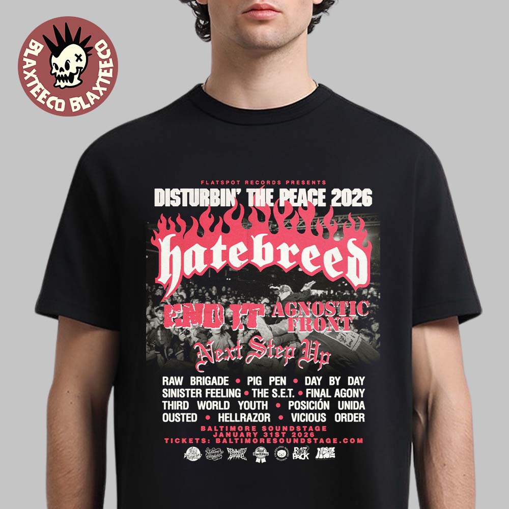 This event t-shirt marks the January 31, 2026 show at the iconic Baltimore Soundstage in Baltimore, making it an essential keepsake for fans of hardcore, punk, and metal culture. Perfect for concerts, everyday streetwear, or adding to a hardcore merch collection, this tee pairs effortlessly with hoodies, jackets, and boots. Whether you were in the crowd or want to represent the scene’s legacy, the Disturbin’ The Peace 2026 Baltimore T-Shirt is more than merch—it’s a statement of loyalty, aggression, and respect for hardcore history.