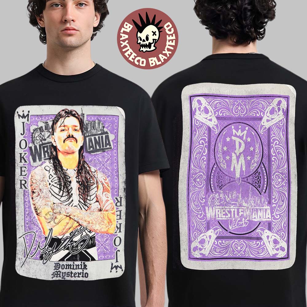 Blaxteeco: About Dominik Mysterio WWE Wrestlemania 42 Vegas Play Card Two Sided T-Shirt: