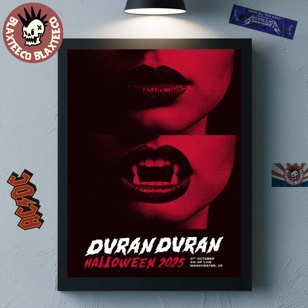 Blaxteeco: About Duran Duran Halloween Show 2025 Merch In Manchester UK At Co-Op Live On 31st October 2025 Mouth And Fangs Art Poster Canvas Introduction