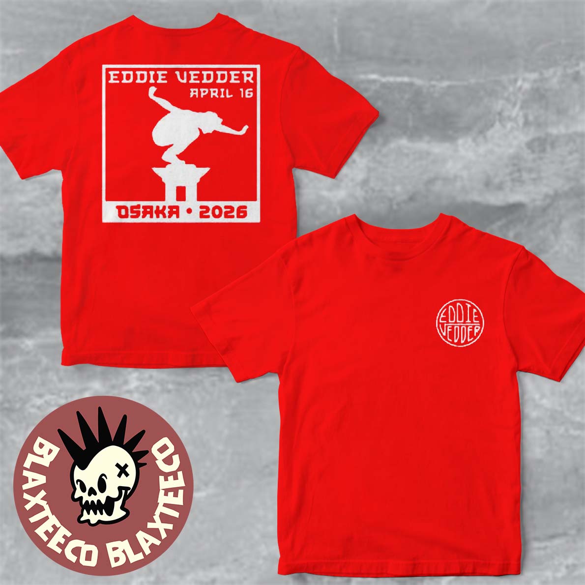 Blaxteeco: About Eddie Vedder Osaka Japan 2026 Hanko Event Tee At Festival Hall On April 16 2026 Two Sided Red T-Shirt: