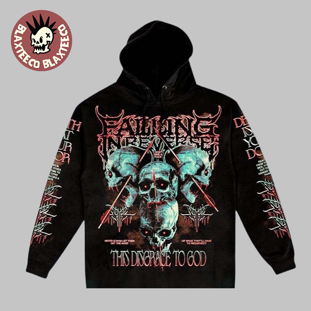 Falling In Reverse This Disgrace To God WhatNot Ronald Hoodie is a powerful statement piece inspired by the band’s dark, aggressive aesthetic and Ronnie Radke’s unapologetic attitude. Featuring a bold graphic design with haunting skull imagery and striking typography, this hoodie perfectly reflects the raw energy and rebellious spirit of Falling In Reverse. The artwork dominates the front and sleeves, creating a visually intense look that stands out in any crowd. With its black base and contrasting graphic details, this hoodie captures the essence of modern metalcore and alternative rock culture.