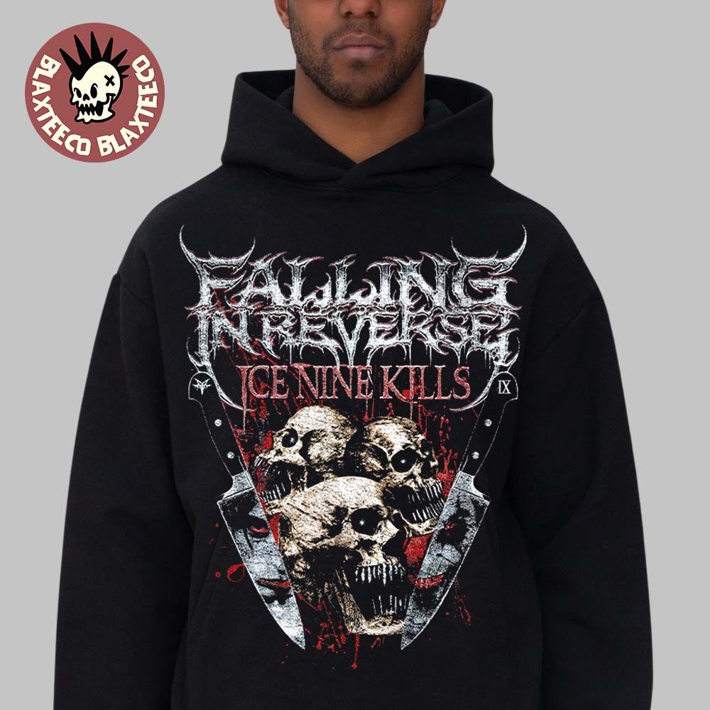 Blaxteeco: About Falling In Reverse X Ice Nine Kills Collab Merch Whatnot Streamathon Triplet Skulls With Daggers Hoodie Introduction: