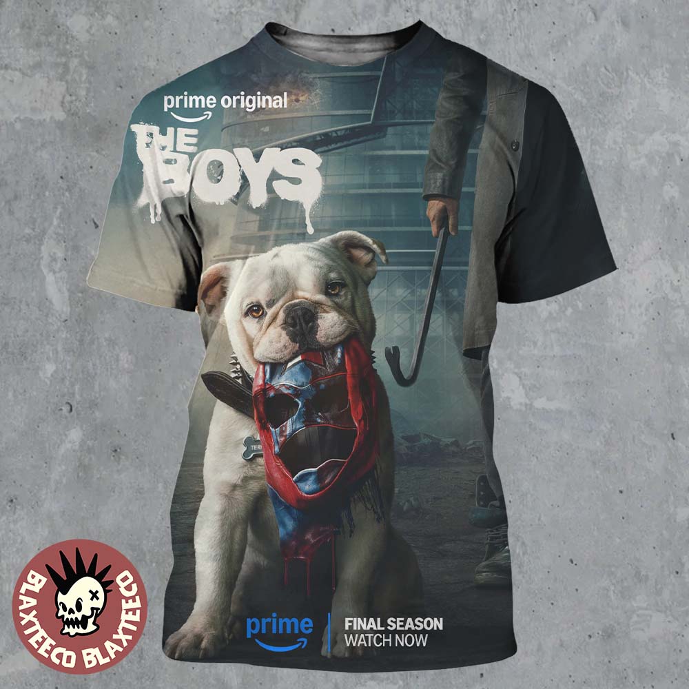 Make a fearless statement with the First Poster For Terror In The Boys Season 5 All Over Print Shirt, a bold and immersive piece for fans of the hit series The Boys. This all-over print design brings the chilling poster artwork to life, featuring Terror—the iconic bulldog—holding a bloodied superhero mask in a dark, cinematic setting. The high-resolution print covers the entire shirt, delivering intense detail and dramatic visuals that capture the gritty, unpredictable tone of the show. From the eerie background to the striking central image, every inch of this shirt is designed to stand out.