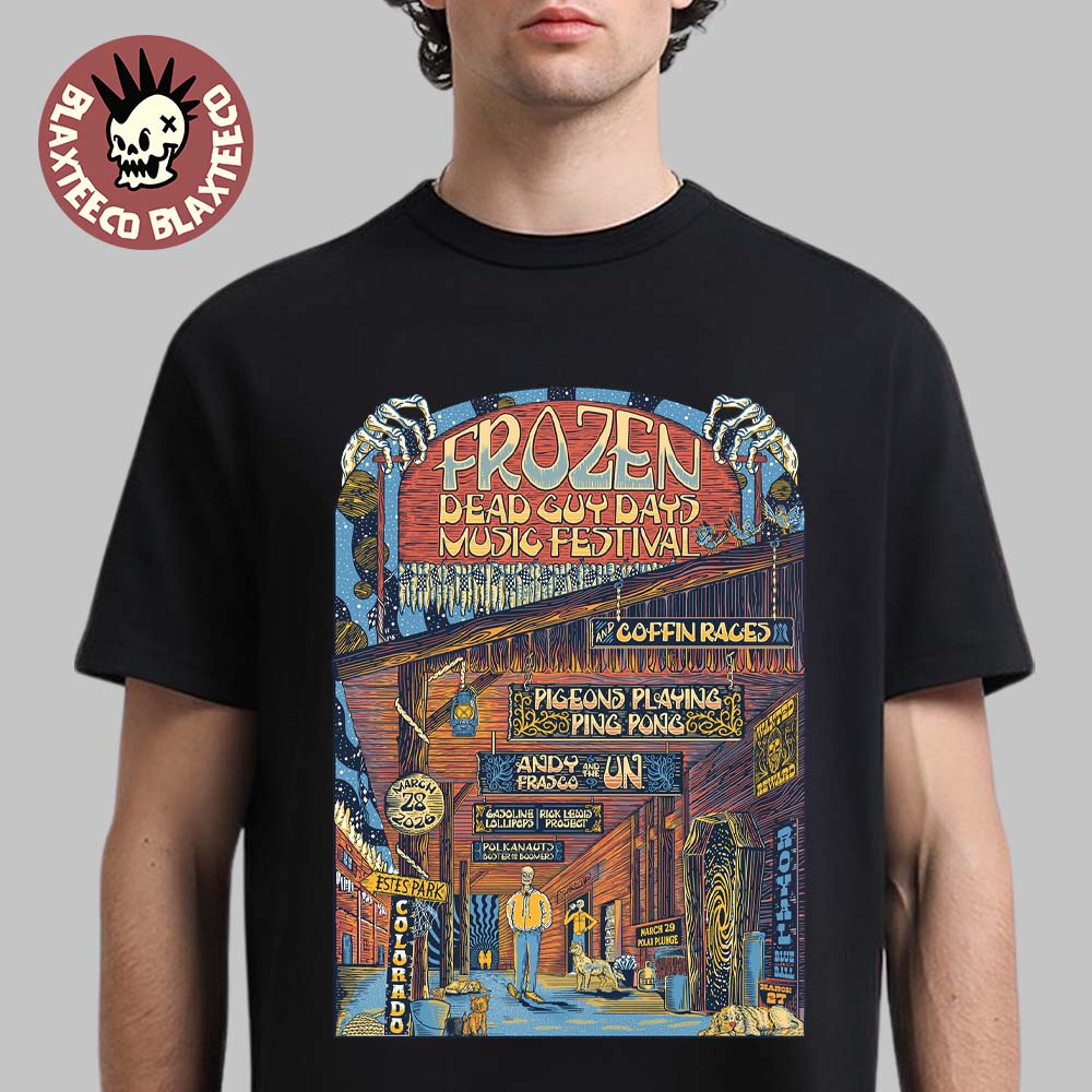 Blaxteeco: About Frozen Dead Guy Days Music Festival 2026 Official Poster In Estes Park Colorado On March 28 2026 Lineup T-Shirt: