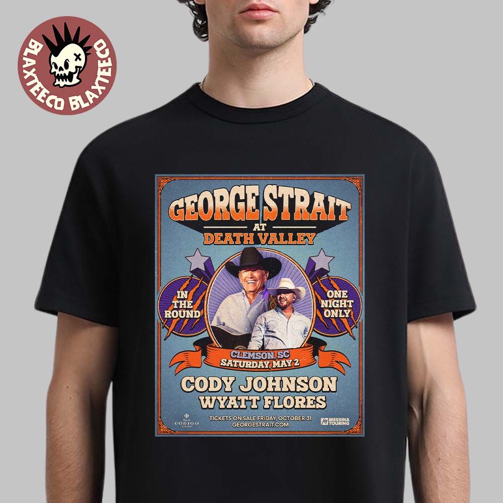 George Strait At Death Valley Stadium Stage 2026 In Clemson South Carolina On May 2 2026 In The Round One Night Only T-Shirt Features: