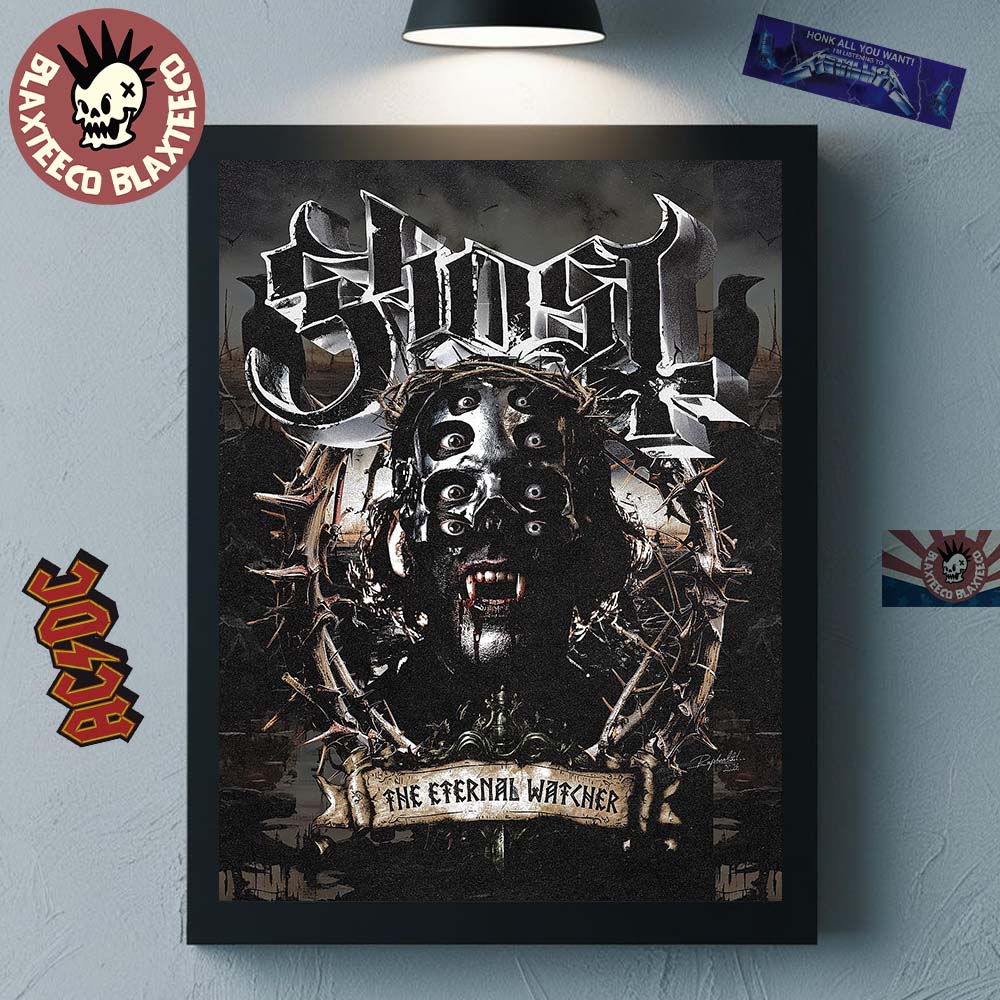 Transform your space with the dark and captivating aesthetic of the Ghost The Eternal Watcher Papa Perpetua Watchful Eyes Home Decor Poster Canvas, a striking piece of wall art inspired by the mysterious world of the iconic rock band Ghost. This dramatic poster canvas features the haunting artwork of “The Eternal Watcher”, showcasing a chilling multi-eyed figure surrounded by a crown of thorns beneath the bold Ghost logo. The gothic imagery, eerie atmosphere, and intricate design details perfectly capture the band’s signature blend of theatrical horror, occult symbolism, and heavy rock energy. With its dark tones and powerful visual presence, this artwork instantly becomes a standout centerpiece for any music-themed room.