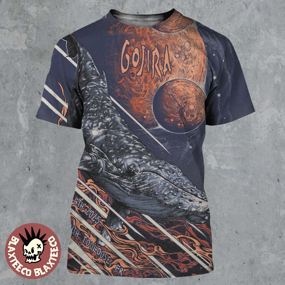Blaxteeco: About Gojira Toulouse France 2025 Venue Poster At Zenith On December 4 2025 Space Whale Art All Over Print Shirt Introduction: