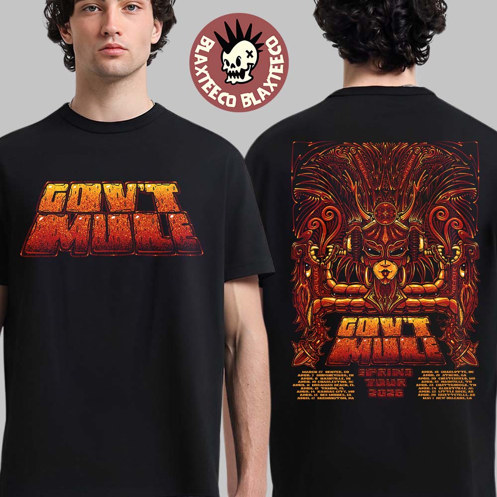 Show your love for Southern rock legends with the Gov't Mule 2026 Spring Tour Schedule Dates Two Sided T-Shirt, a bold and artistic piece that perfectly captures the band’s signature vibe. The front features a rugged, textured “Gov’t Mule” logo in fiery tones, giving off a raw, road-worn feel that reflects the band’s powerful live performances. It’s a clean yet striking design that pairs effortlessly with any casual outfit while still making a strong statement.