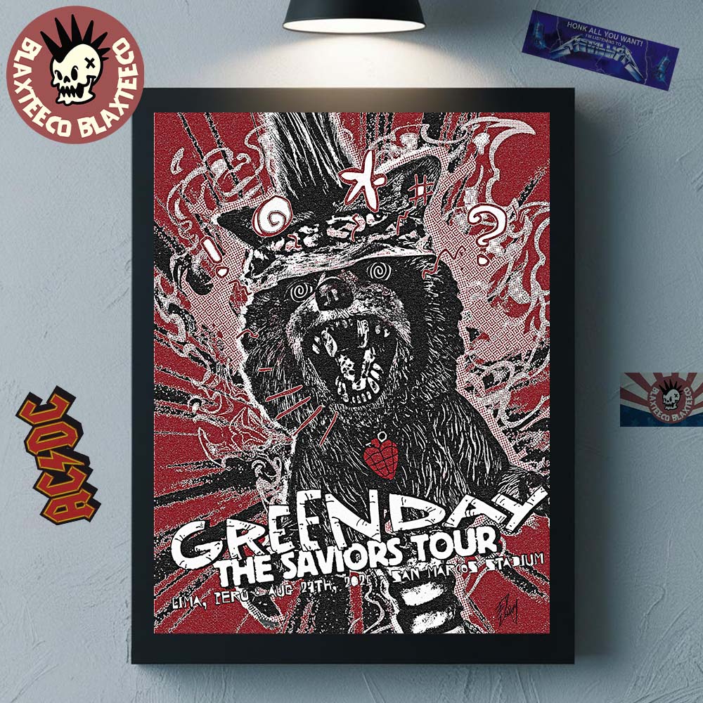 Blaxteeco: About Green Day The Saviors Tour 2025 Lima Peru Venue Poster At San Marcos Stadium On August 27 2025 Home Decor Poster Canvas Introduction