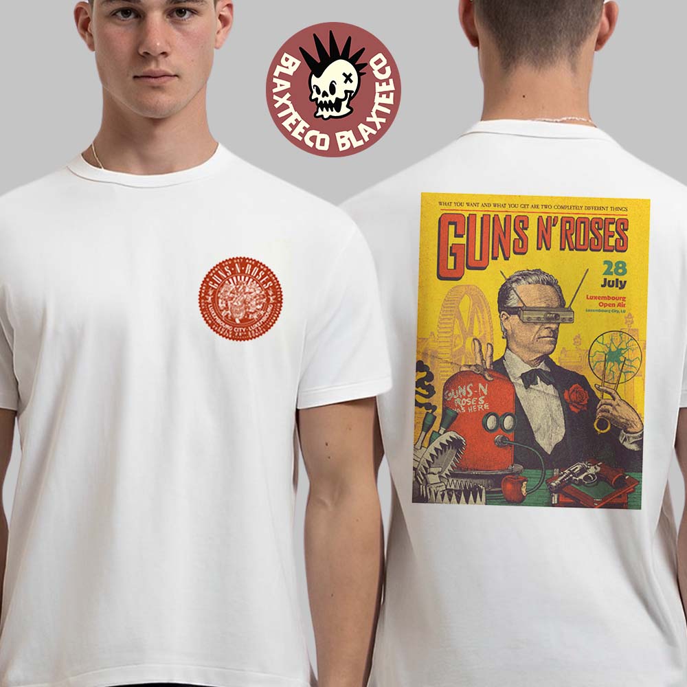 With its unique design, the Luxembourg 2025 Guns N Roses white t-shirt is more than apparel—it’s a keepsake from a landmark live event. The bold graphics and vibrant detailing make it a standout addition to any wardrobe, while the durable fabric ensures it stays in perfect shape for years to come. Whether you’re purchasing it as a gift or adding to your own collection, this two-sided t-shirt commemorates an unforgettable night of music and rock history. Don’t miss your chance to own this exclusive piece of Guns N Roses merchandise, perfect for fans who want to relive the excitement of Luxembourg Open Air 2025 every day.