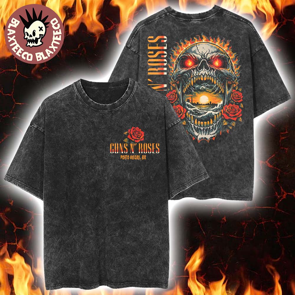 Blaxteeco: About Guns N Roses Porto Alegre Brazil 2026 Venue Merch Tee At Jockey Club On April 1 2026 Flaming Skull Vintage Washed Tee: