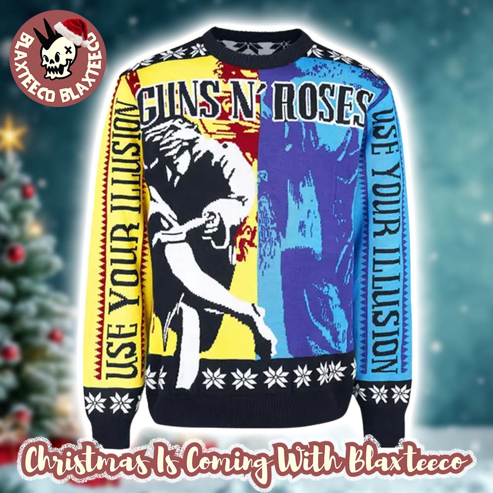 Guns N Roses Use Your Illusion Album Split Yellow And Blue Album Cover Ugly Christmas Sweater Jumper Features: