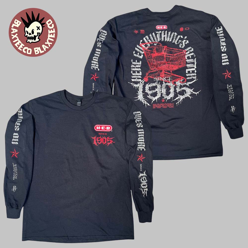 Blaxteeco: About HEB Metal Tee Austin Texas x Connor Dwyer With The Health Alliance 2025 Shopping Cart Art All Over Print Long Sleeve Tee Introduction: