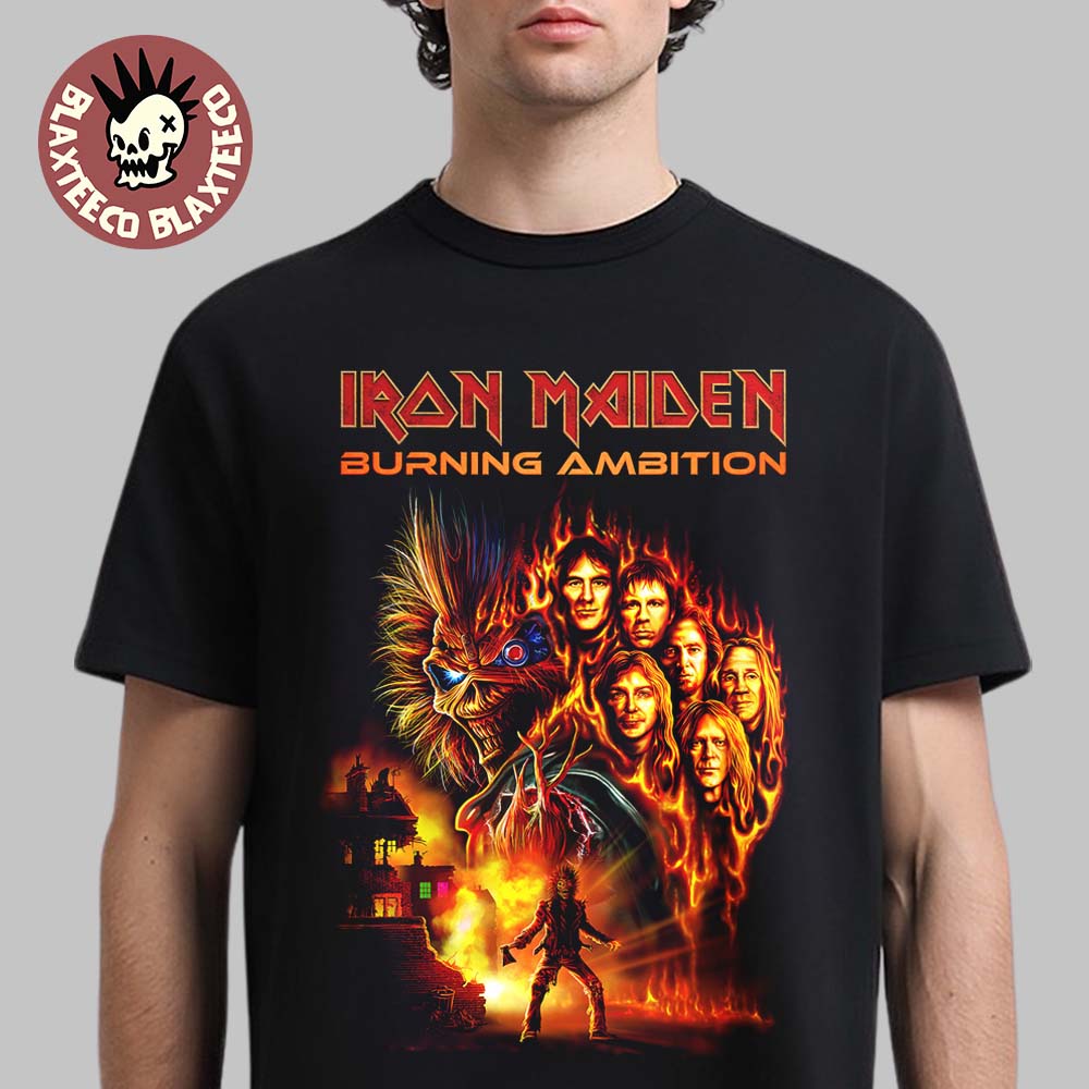 Iron Maiden Burning Ambition Movie Poster T-Shirt Features: