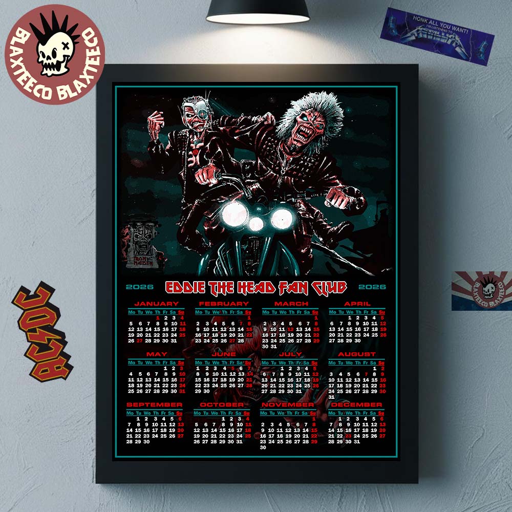 Iron Maiden Eddie The Head Fan Club 2026 Calendar Poster Features: