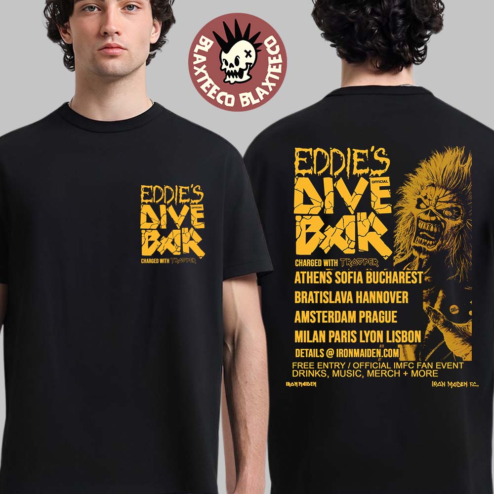Blaxteeco: About Iron Maiden Eddie's Dive Bar 2026 Run For Your Lives Tour Europe Schedule Dates Two Sided T-Shirt: