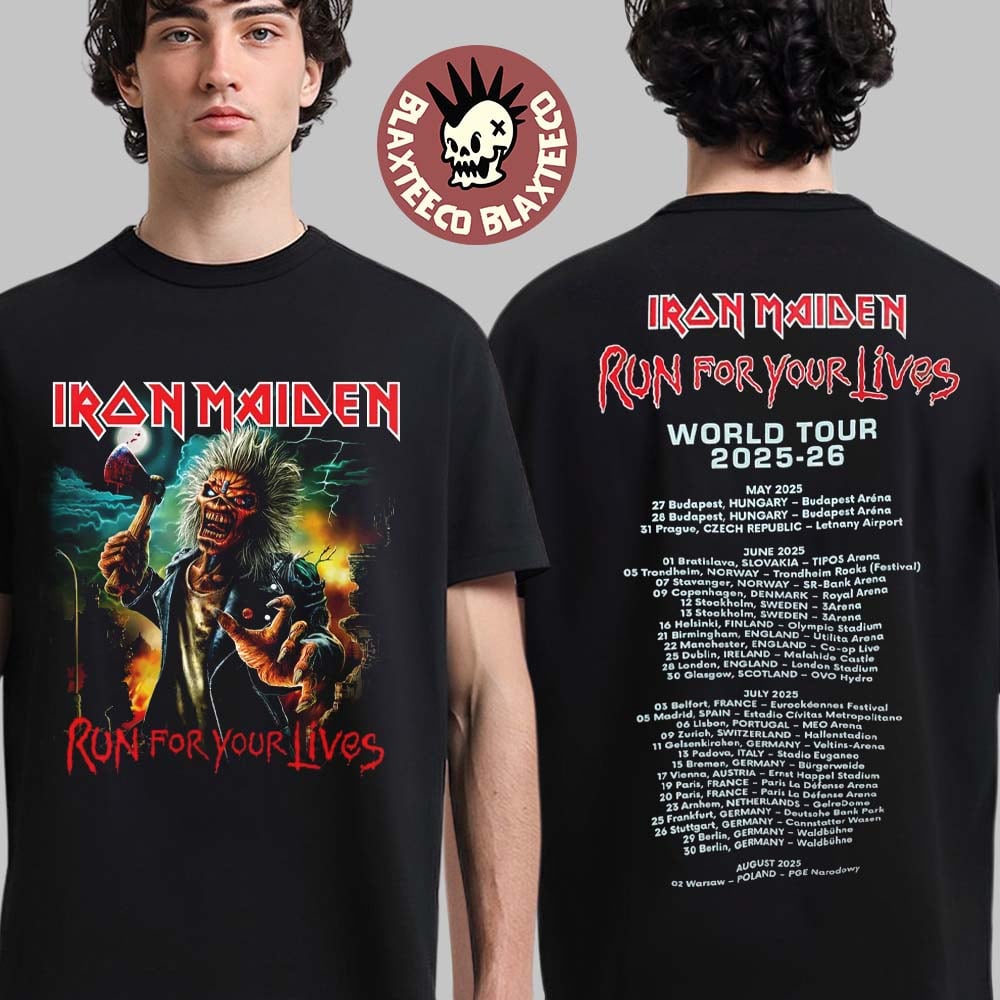 Blaxteeco: About Iron Maiden Run For Your Lives World Tour 2025-2026 With Tour Dates Two Sides Unisex T-Shirt: