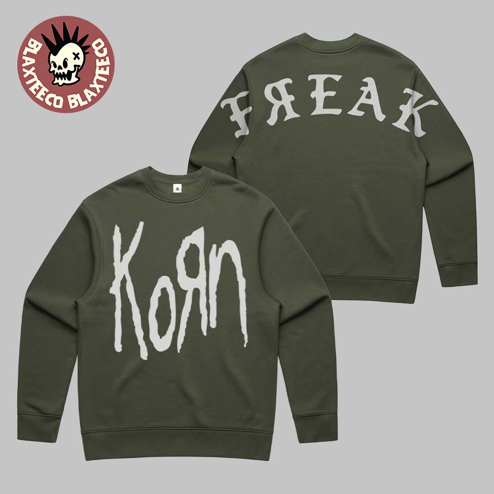 Celebrate the holiday season with heavy-hitting style in the Korn Christmas Holiday 2025 Freak Crewneck Sweater. Designed for fans who crave a bold, alternative twist to festive fashion, this sweater features the iconic distorted Korn logo across the front in striking white lettering. The deep olive-green base adds a winter-ready feel while keeping the design versatile enough for everyday wear throughout the colder months. Crafted from a soft, durable fabric blend, this crewneck delivers exceptional comfort, warmth, and long-lasting print quality. Whether you’re heading to a holiday gathering, a winter concert, or simply want to showcase your love for nu-metal legends, this piece brings together signature band aesthetics and seasonal spirit with effortless edge.