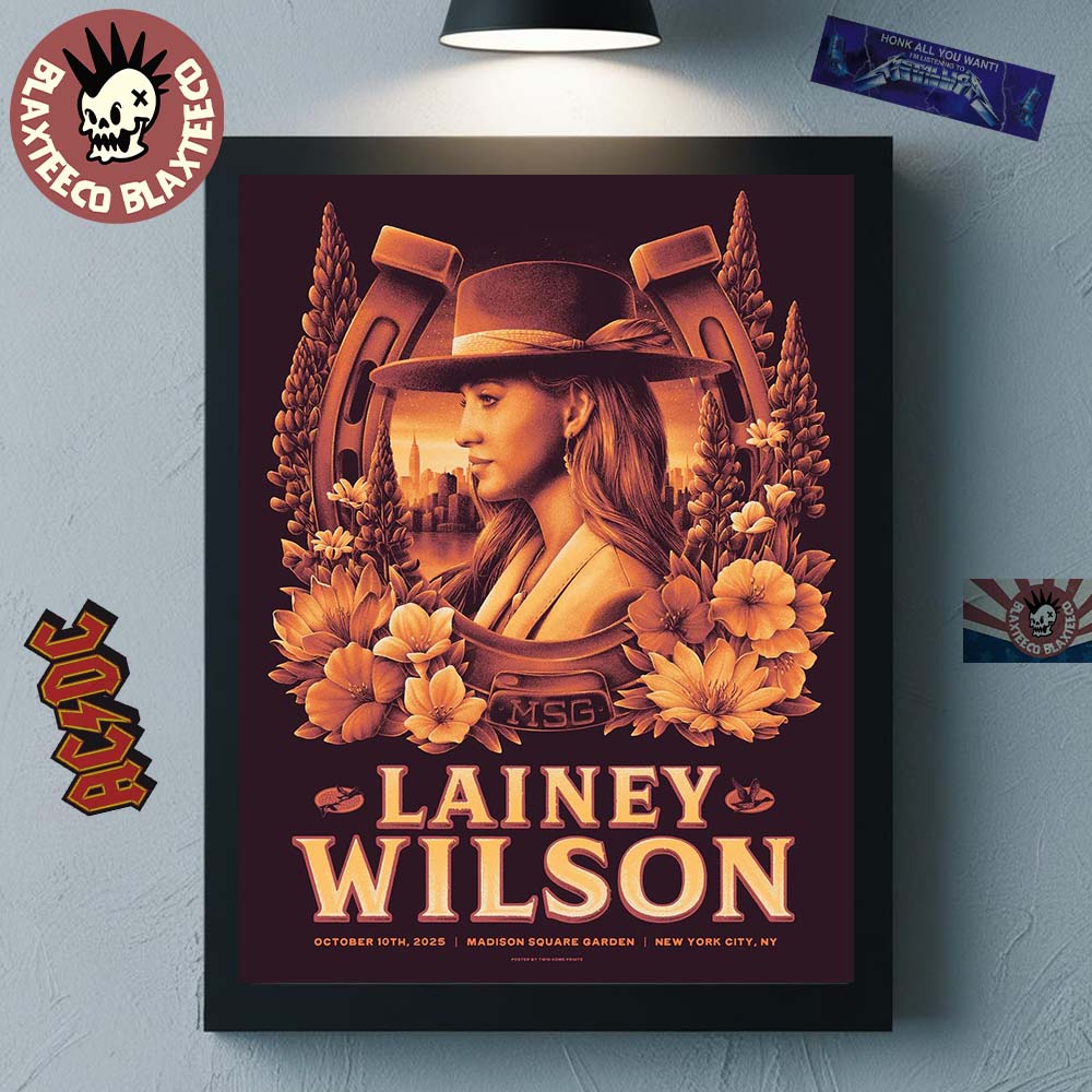 Celebrate the electrifying energy of Lainey Wilson live in New York City with this exclusive 2025 gig poster! Capturing her iconic performance at Madison Square Garden on October 10, 2025, this high-quality home decor poster canvas is perfect for fans and collectors alike. Featuring stunning artwork that highlights Lainey Wilson’s dynamic stage presence, this poster brings the excitement of one of the year’s most anticipated concerts straight into your living space. Whether displayed in a music room, living area, or personal collection, it’s a vibrant addition that honors Wilson’s unique style and the unforgettable atmosphere of her New York City show.
